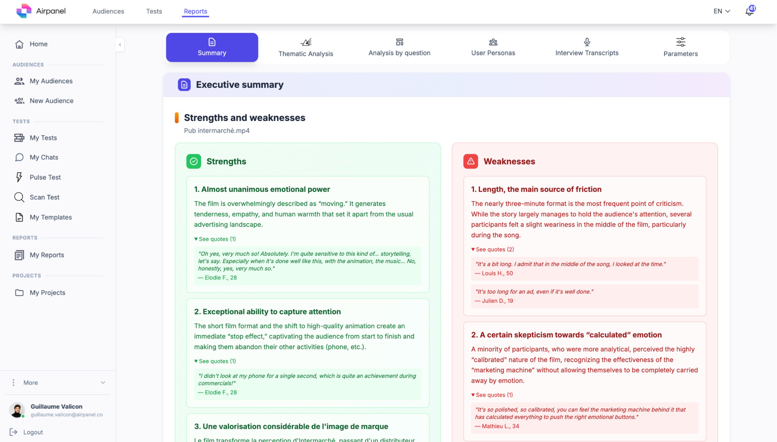 Airpanel currently focuses on qualitative research (open-ended questions, up to 50 respondents). Quantitative insights are in development and will be available in Q1 2026.